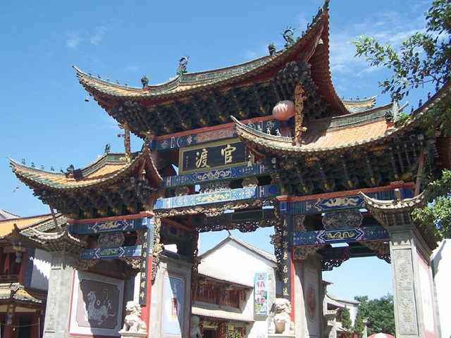 历史悠久的官渡镇位于昆明东南郊,是昆明地区著名的历史文化古镇之一。官渡原名“窝洞”是滇池岸边一个螺丝壳堆积如山的渔村。这里云水淼霭,薰风无浪,风光如画。早在唐代,“窝洞”便是南诏王公游览滇池时理想的驻足之地。宋代,大约在1180年至1190年间,驻守“鄯阐”的演习高生世,常乘舟至窝洞游览。高生世的船绳于岸边,于是便把窝洞命名为“官渡”。高氏似乎对官渡情有独钟,干脆把官渡划为自己直接管辖的治所,于窝洞置官渡县治,并修建了城池。