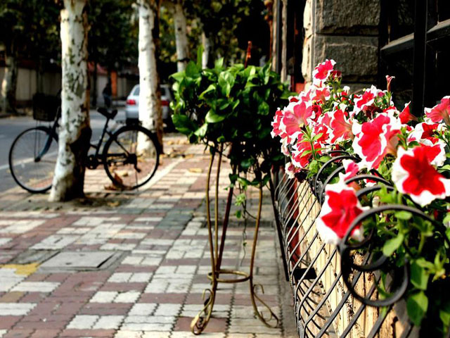 一到夏天,这里便是绿色的走廊,密密的树叶,清凉的风,走在小路上的步子也轻盈起来,细碎的阳光斑斑点点落下来,那曾是旅居在此的法国人的思乡旧梦啊。而那些沿街的法式别墅,经过这么多年,都磨砺成古铜色了,爬山虎之类的藤类植物从顶垂到底;配上镶嵌其中的粗糙的鹅卵石,沧桑的底色充满着怀旧情调,其中有不少名人故居。