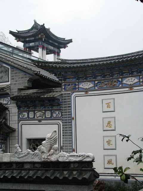 喜洲白族民居建筑群位于云南省大理白族自治州大理市喜洲镇。东临洱海,西枕苍山。中国西南边疆的历史文化名镇。山清水秀、物产丰富。闻名遐迩的蝴蝶泉坐落其中,中外闻名的电影《五朵金花》就在此拍摄。以“三坊一照壁”,“四合五天井”封闭式庭院为典型格局,有独成一院,有一进数院,平面呈方形,造型为表瓦人字大层顶,二层、重檐;主房东向或向南向,三间或五间,土木砖石结构,木屋架用榫卯组合,一院或数院连接成一个整体,外墙面多为上白(石灰),下灰(细泥)粉刷。