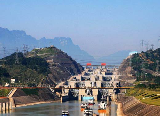 - 三峡船闸学名是双线五级连续船闸,位于大坝左侧的坛子岭外侧,世人称之为“长江第四峡”,每个闸室长280米,宽34米,这个大小和现在的葛洲坝的船闸大小是一样的,不过葛洲坝是单级船闸。