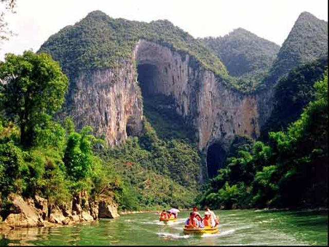 位于三岔河的伏流表面和河道的两侧。这是一片水上石林景观,面积0.19平方公里,这里有大大小小的天然山石、水石盆景。弯弯曲曲的石板小道,穿行于石壁、石壕、石缝之中,逶迤于盆景边石之上。
