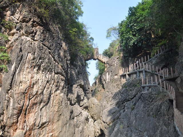 沿小道游览,抬头是景,低头是景,前后左右皆成景,仿佛到了天上的仙境,地下的迷宫。主要景观有步步景、一线水、空灵石、天星照影、长表峡、侧身岩、歪梳石、寻根岩、鸳鸯藤、盘龙图、美女榕、象鼻石、天星楼、雏鹰出山等。