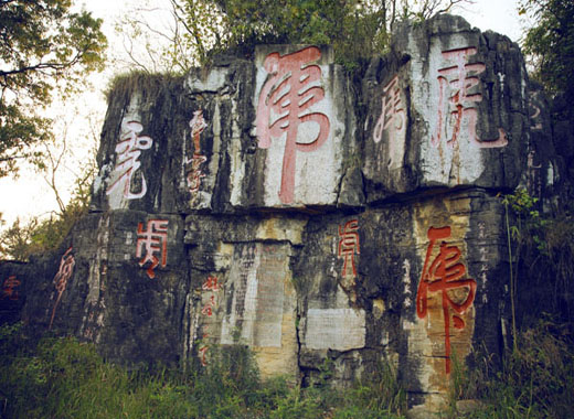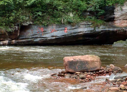 与三岔河朝夕相伴的景观,东岸有苗族起义军将领杨树森手书的“虎”字石刻崖壁,是贵州最大的“虎”字崖,景区内的“群虎山”共征集了省内外书法家66个“虎”字墨迹镌刻此山周围,这些“虎”字,大小不一,风格各异,66“虎”字,代表六六大顺,虎虎生威;南岸有考古价值极大的古汉墓群;西岸有可登陆步至苗寨人家,一览古朴的民族风情;北岸可参观三岔河酒厂和县水电局的鱼种场,若游客有雅兴,既可喝到鲤鱼的鲜汤,又可品尝窑酒的芳香。