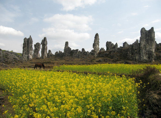 石林景区面积16平方公里。像一座布满假山怪石的浓浓缩盆景花园,是典型的溶蚀喀斯特地貌的奇观,也是沧海桑田的诠释。内有“少女怀春”、“天狗盼月”、“海豚望天”、“将军出征”、“唐僧西行”、“母子情深”等栩栩如生、惟妙惟肖的石林景观,还有一棵棵擎天石柱,一尊尊奇形怪石,更象一座千姿百态的盆景园,给人留下无限的遐想。竹林堡石林与三岔河名胜风景区、双乳峰遥相呼应,融为一体。交通便宜,景观独特,许多游客流连忘返。