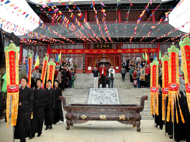 每逢重大节日,布依人携老带幼,身穿节日盛装,吹着唢呐,念唱经文由寨子而来。到了贞观寺脚下,必定长幼有序,老者男子先入内,祈求风调雨顺;老者妇人其次,祈盼人丁兴旺;青年男女则会为自己的事业求上一签;未婚的少年少女,更多的是愿望在下一次“浪哨”中遇见心仪的另一半。