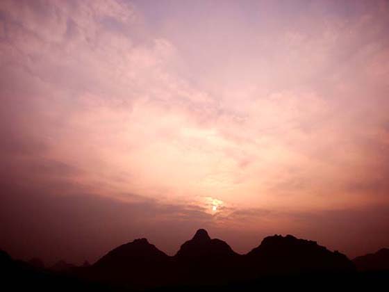 贞观寺坐落在美丽的石林旁,与圣洁的双乳峰遥遥相望,依山就水而建。拾级而上,仰望淡淡薄雾环绕下的贞观寺,香气缭绕的大雄宝殿,晨光的笼罩下时隐时现的斜晖,耳边僧人礼佛的钟声,身边一张张虔诚的面孔,焚一炷长香袅袅升起的薄烟,宝珠梵刹景最幽。