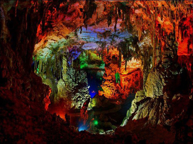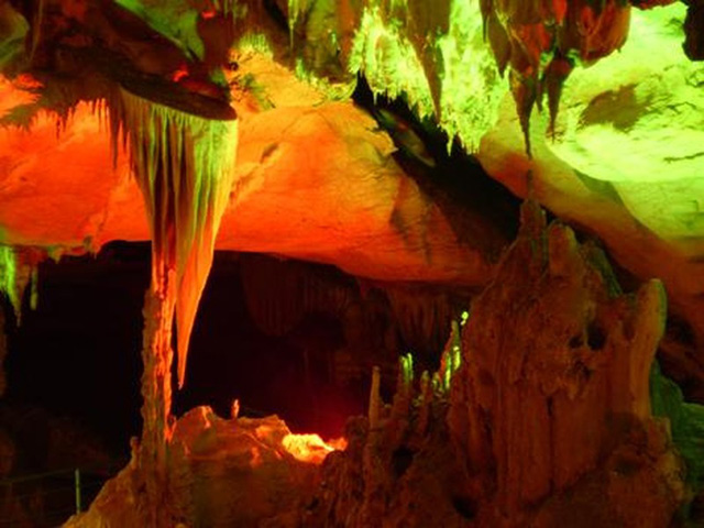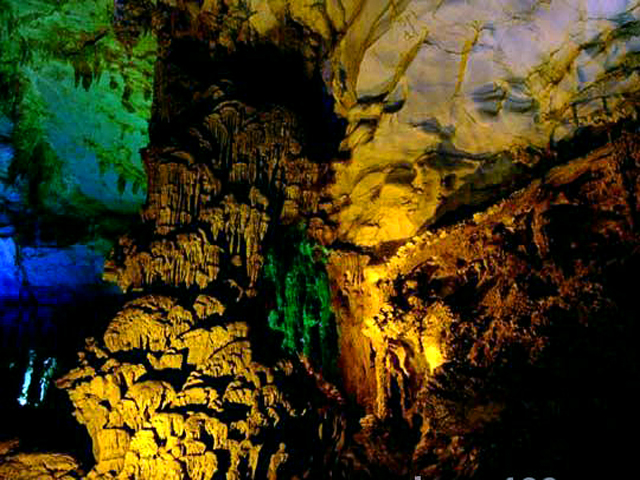 第三层旱洞洞体高大宽阔,大量岩溶发育似树,树冠伸展,阴及面广,灯光下五彩斑斓,有置身世外的享受。