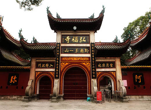 - 弘福寺位于贵阳市黔灵山群峰中心,距城约1。5公里,是十方丛林,为贵州首刹,向有“黔南第一山”之称。弘福寺于1672年(清康熙11年)由赤松和尚开创,“弘福”二字乃“弘佛大愿,救人救世;福我众生,善始善终之意。赤松是为本寺开山始祖,佛法为临济一系之正宗,乃禅门五宗之一。