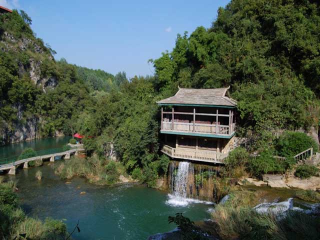 穿瀑布、钻弯洞、过小桥、看水车、访农家,观赏苗家姑娘亲手织的精美刺绣;或去参观离潭不远的石砌圆形屯堡,一座座古代战争中防御工事,在那儿,可以引起您的怀古遐思。